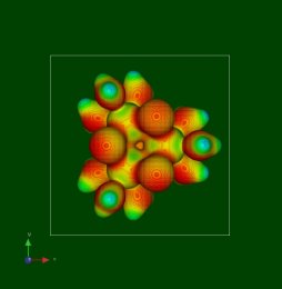 (電子密度のIsosurface level: 0.03a0-3, 静電ポテンシャルのSurface Colorization Scale: 0.5)